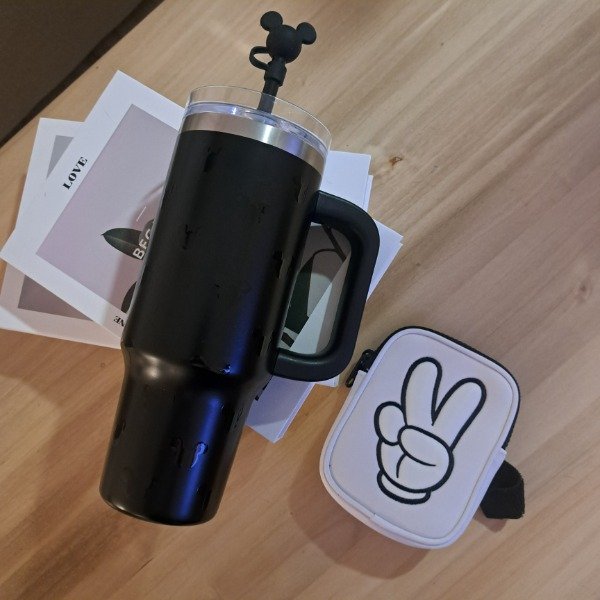 • Diseño: Vaso negro mate con íconos de Mickey Mouse en relieve