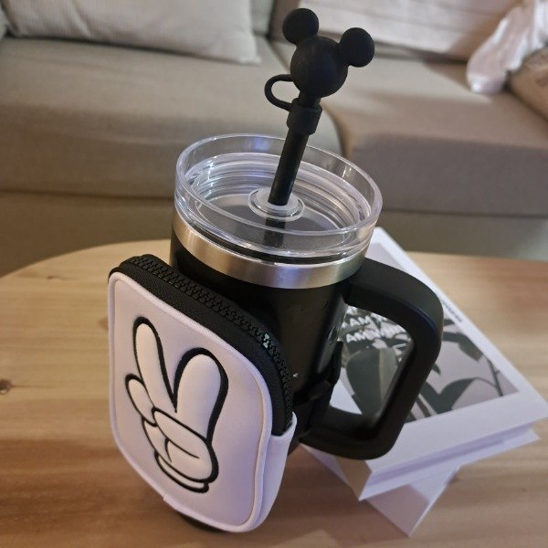 Tapa transparente con una pajita con forma de Mickey y una bolsa extraíble con cremallera para mayor comodidad.